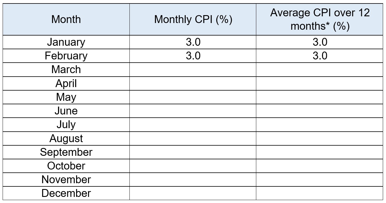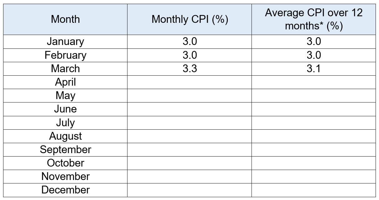 The table below tracks average inflation between January and December 2026. It will be updated in a timely manner following each inflation release from the ONS.