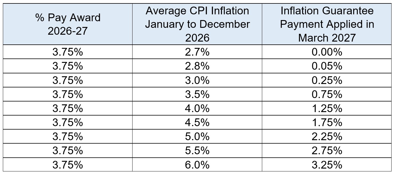 The table below sets out what the pay award will be in 2026-27 relative to different rates of cumulative CPI inflation over 2026.